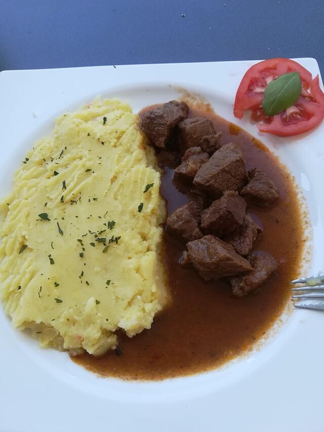 Peppers stuffed with meat served with mashed potato -must have traditional and regional food in our bistro in Okrug near Trogir.